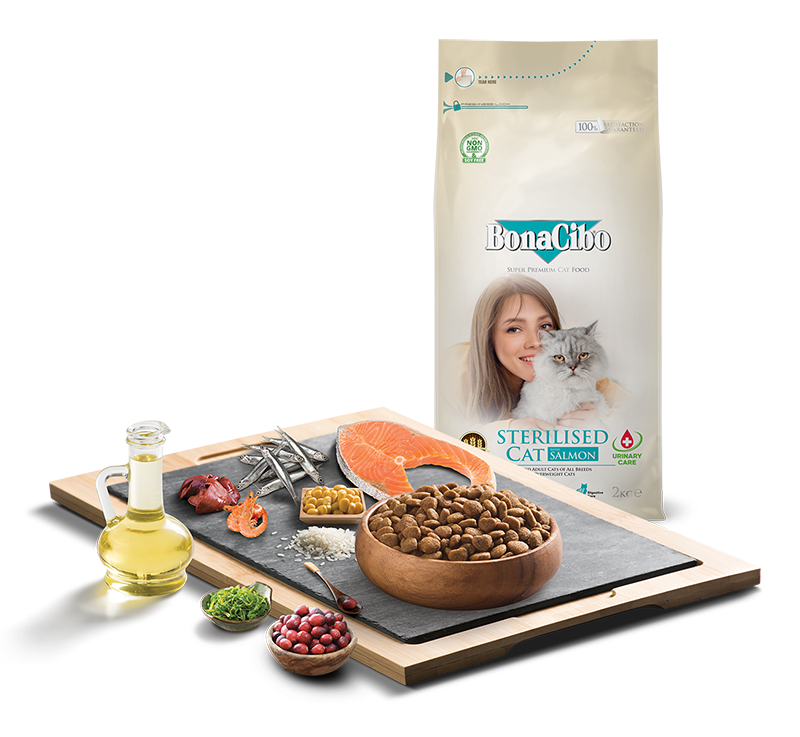 Çağatay’ın tüm formüllerinde üriner taş riskini en aza indirmek için PH ve mineral seviyeleri hassasiyetle dengede tutulmuştur ve özellikle kısır kediler için Bonacibo Light & Sterilised tavuklu ya da somonlu mama kullanılmalıdır.