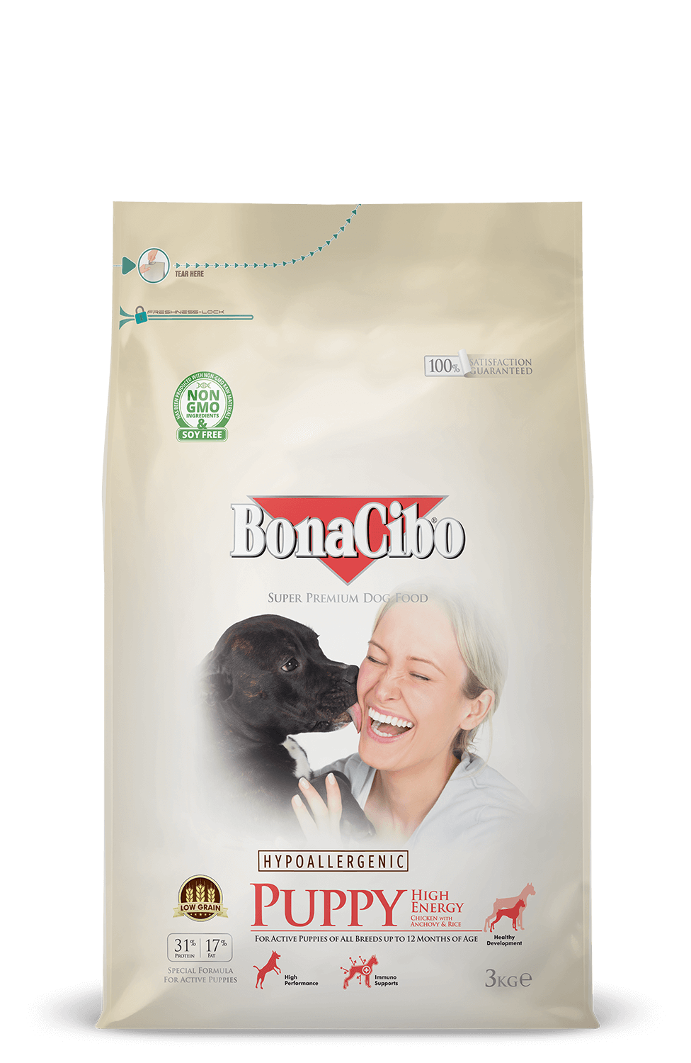 BonaCibo Puppy High Energy is formulated with extra energy to support the healthy development of active puppies. Balanced protein, fats and carbohydrates also provide healthy growth by improving metabolism and bone development in the body.
