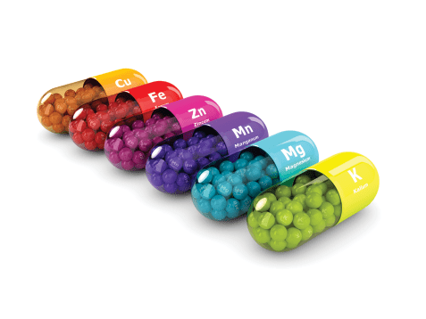 Minerals such as copper and manganese, are required in very small quantities and are important components of enzymes
