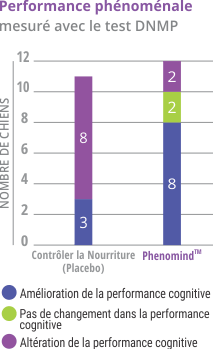 Les chiens âgés nourris avec des régimes riches en Phenomind ont montré une amélioration significative des performances cognitives de la mémoire, évaluée par les scores au test de position sans concordance retardée par rapport au groupe témoin âgé (p <0,0301).